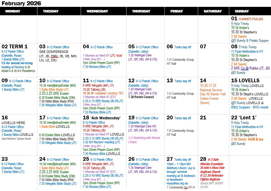Parish Calendar Posted by suttonforestanglican on June 5, 2020January 26, 2026 Updated 26/1/2026. Calendars are regularly reviewed, check close to the date for any changes. Like Loading... Related