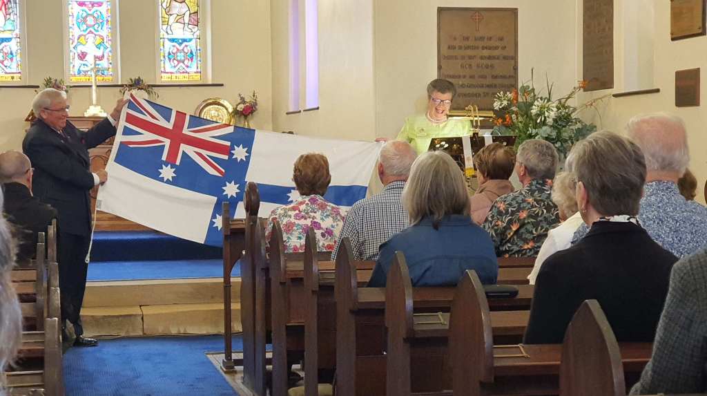 Our good friend and historian, Exeter’s Linda Emery, surprised us by saying this flag had truly come home. Sutton Forest owed more than the design of this beautiful flag to any Naval Captain. He was OUR Captain Nicholson, late of Sutton Forest!